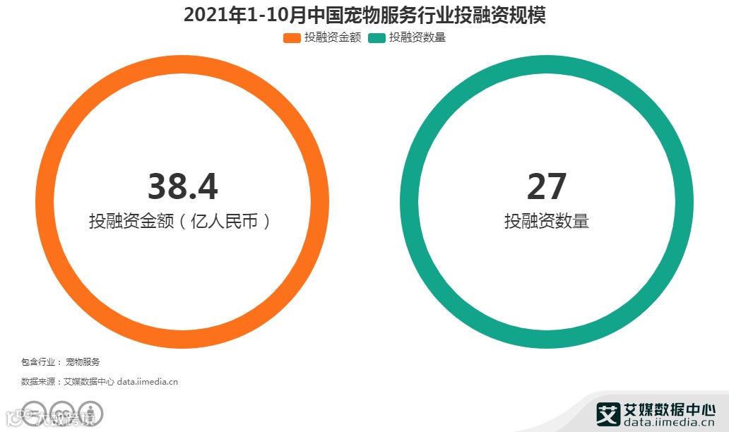 市场火热,宠物行业的融资频率也在逐年上升。艾媒数据中心(data.iimedia.cn)数据显示,2020年,宠物行业发生了27起投融资事件,涉及金额为56.71亿元。2021年1-10月,中国宠物行业共发生了27起投融资事件,共融资38.4亿人民币。具体从融资细分领域来看,宠物食品和宠物用品仍然是资本关注的重点。