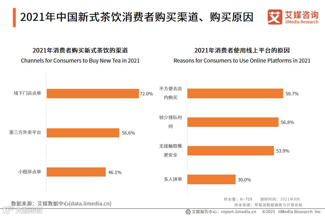 2021年中国新式茶饮消费者购买渠道、购买原因