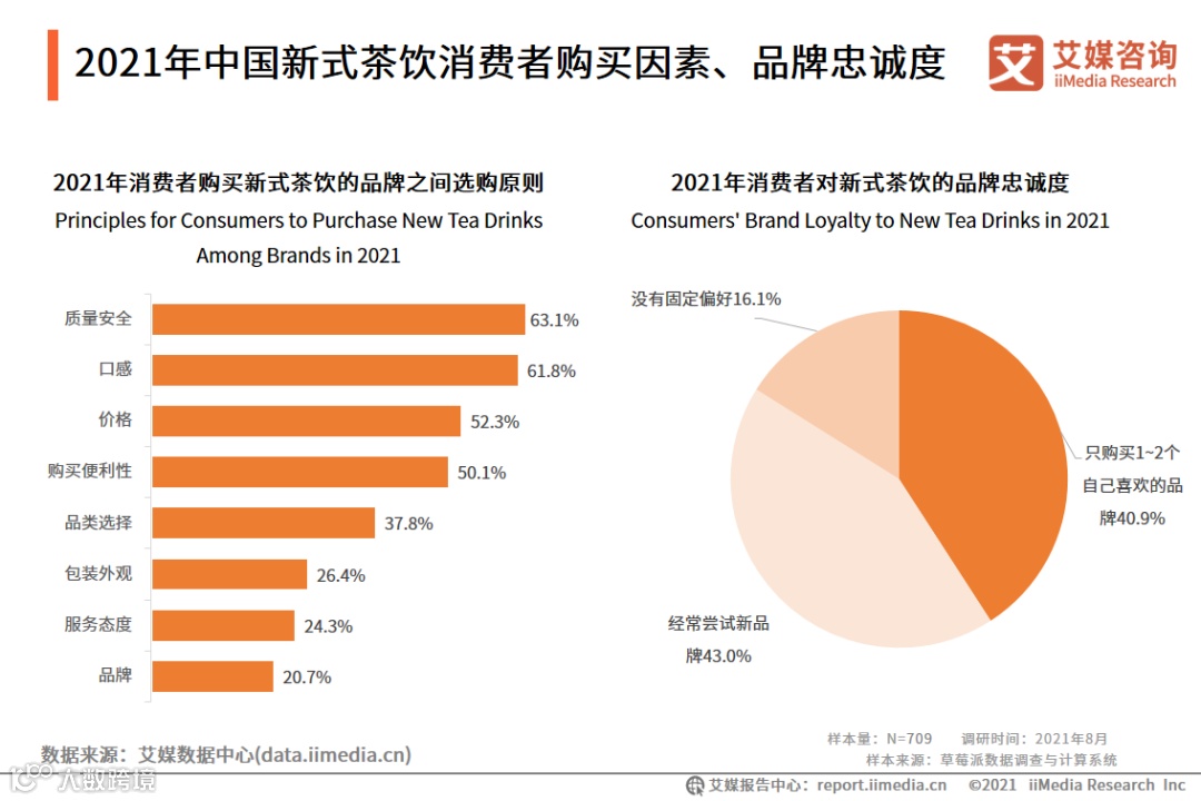 2021年中国新式茶饮消费者购买因素、品牌忠诚度
