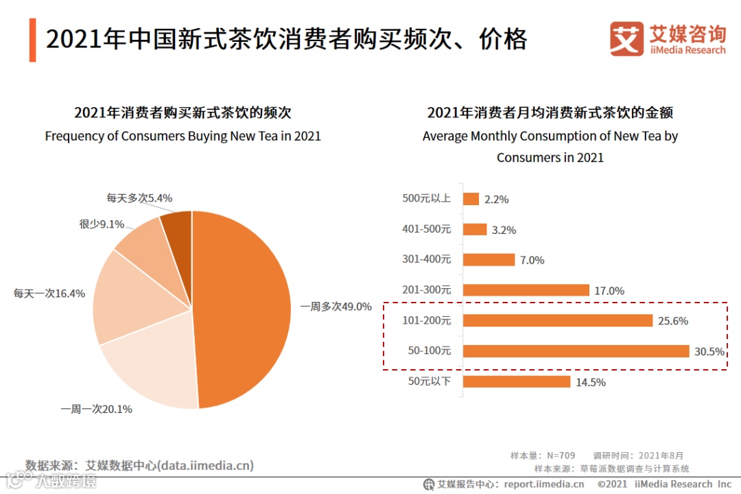 2. 2021年中国新式茶饮消费者购买频次、价格