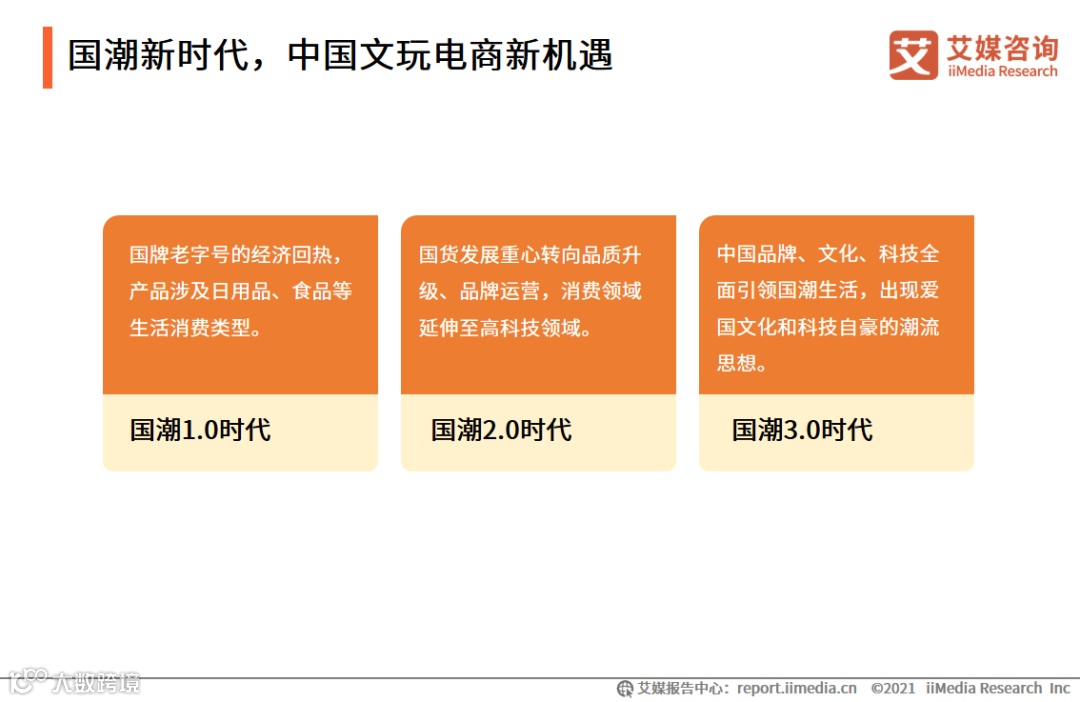近几年,国潮已迈入3.0新时代,从单一的老字号品牌的回春,到国货品牌的再升级,再到如今中国品牌、中国文化、中国科技的全面崛起,国人的文化认同感不断增强,体现在对民族文化、民族科技的热情追捧,预计未来国潮的热度将会保持上涨趋势。传统文玩市场上的产品均为中国传统手工艺品,产品都具有鲜明的中国文化特色,国潮新时代的袭来,文玩电商行业唯有打破定价难、鉴定难以及售后产品质量纠纷等行业痛点,实现企业品牌的升级,才能更好地享有国风热潮带来的经济收益。