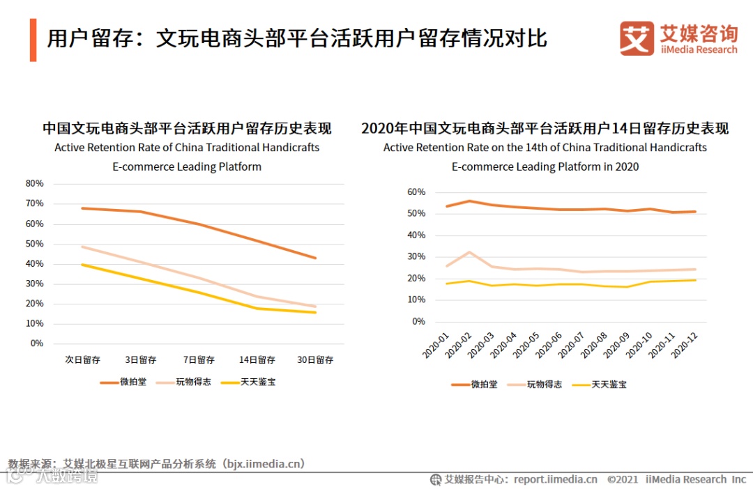 用户留存:文玩电商头部平台活跃用户留存情况对比