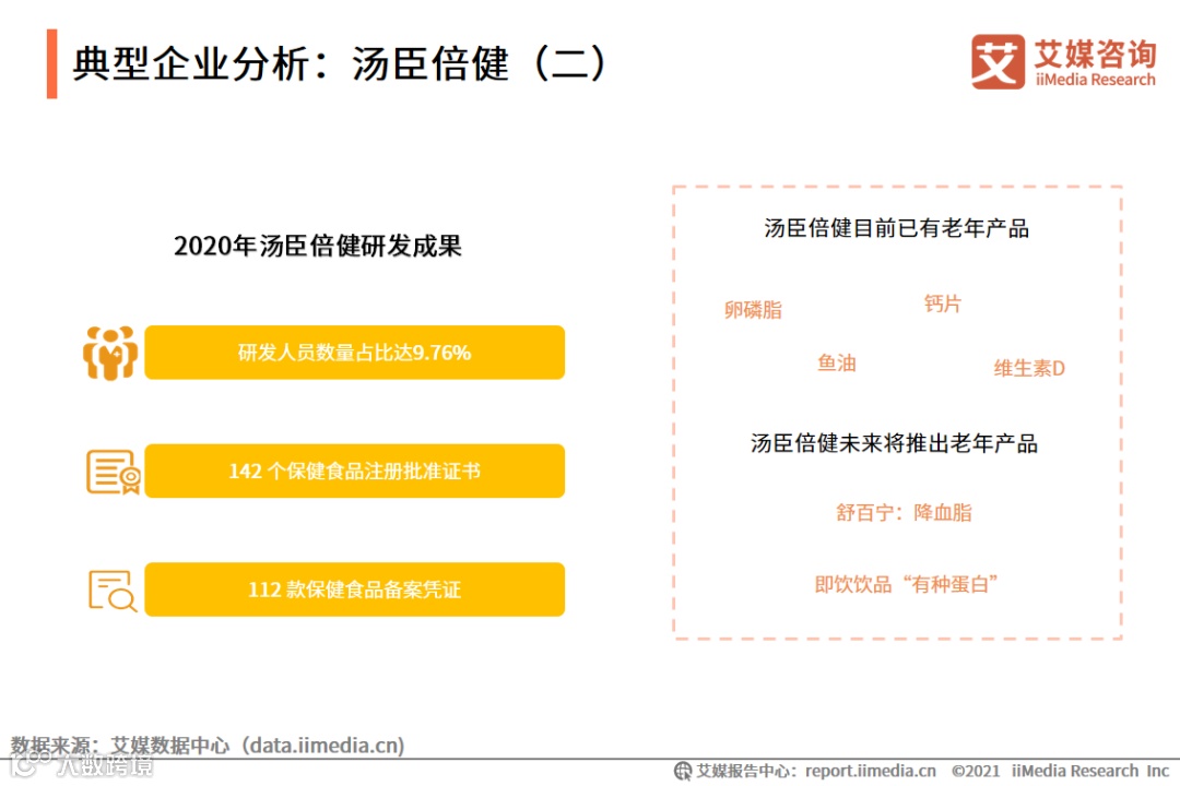 数据显示,汤臣倍健的研发费用保持增长,2020年研发投入1.4亿元。在新技术的不断迭代下,汤臣倍健正在完善产品线,进一步丰富老年群体产品矩阵。