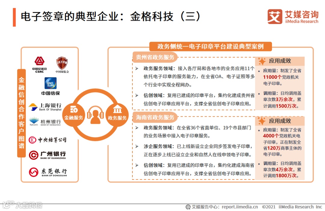 目前金格科技为多家政府及金融机构提供信创电子签名解决方案,其中包括中国证监会、中国银监会、中国信保等。截至目前金格科技已为16个国家级政府机构、26个省级政府机构、24个地级市政府机构提供了电子签名解决方案。