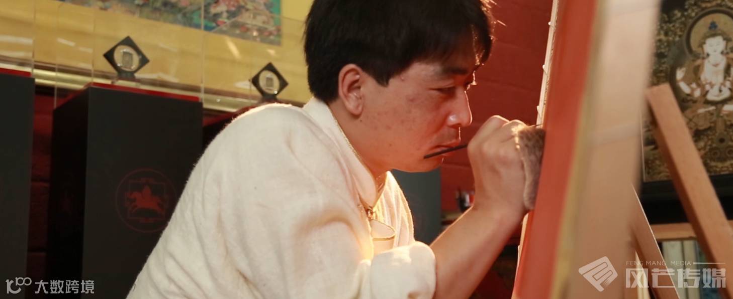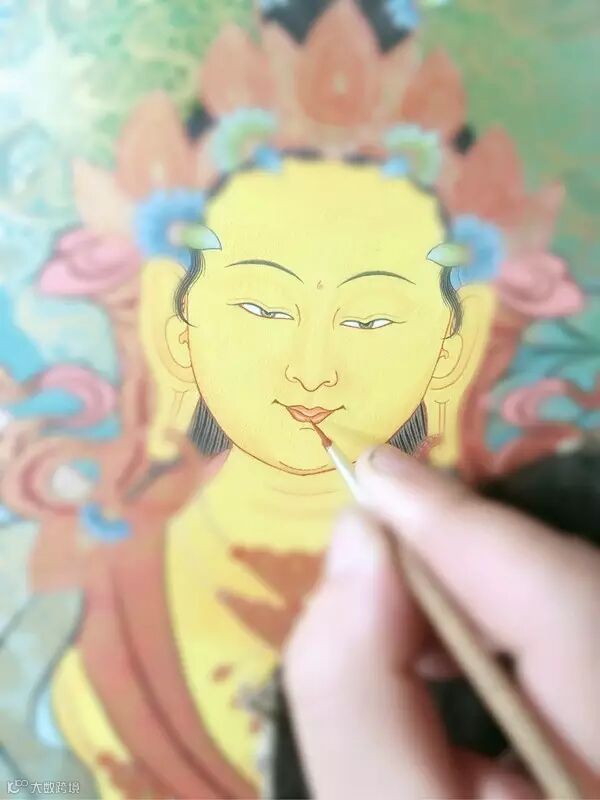 最开始绘制小型唐卡的他内心拒绝的,唐卡变小了,佛像亦是如此。在如此小的画面上作画,其难度不言而喻。精致讲究的唐卡绘制起来就像画工笔画,用笔细腻,风格华丽,构图讲究饱满,线描绘的生动传神。因此,每一次绘画过程都像是一场无声的战役,往往一眨眼、一喘气、甚至一次激烈的心跳都会导致功亏一篑。