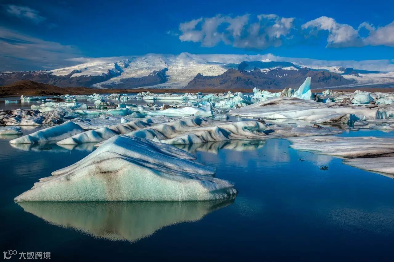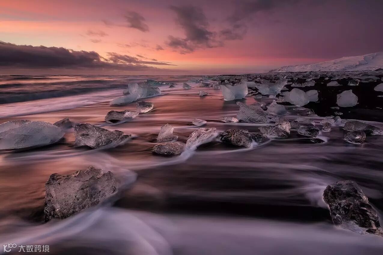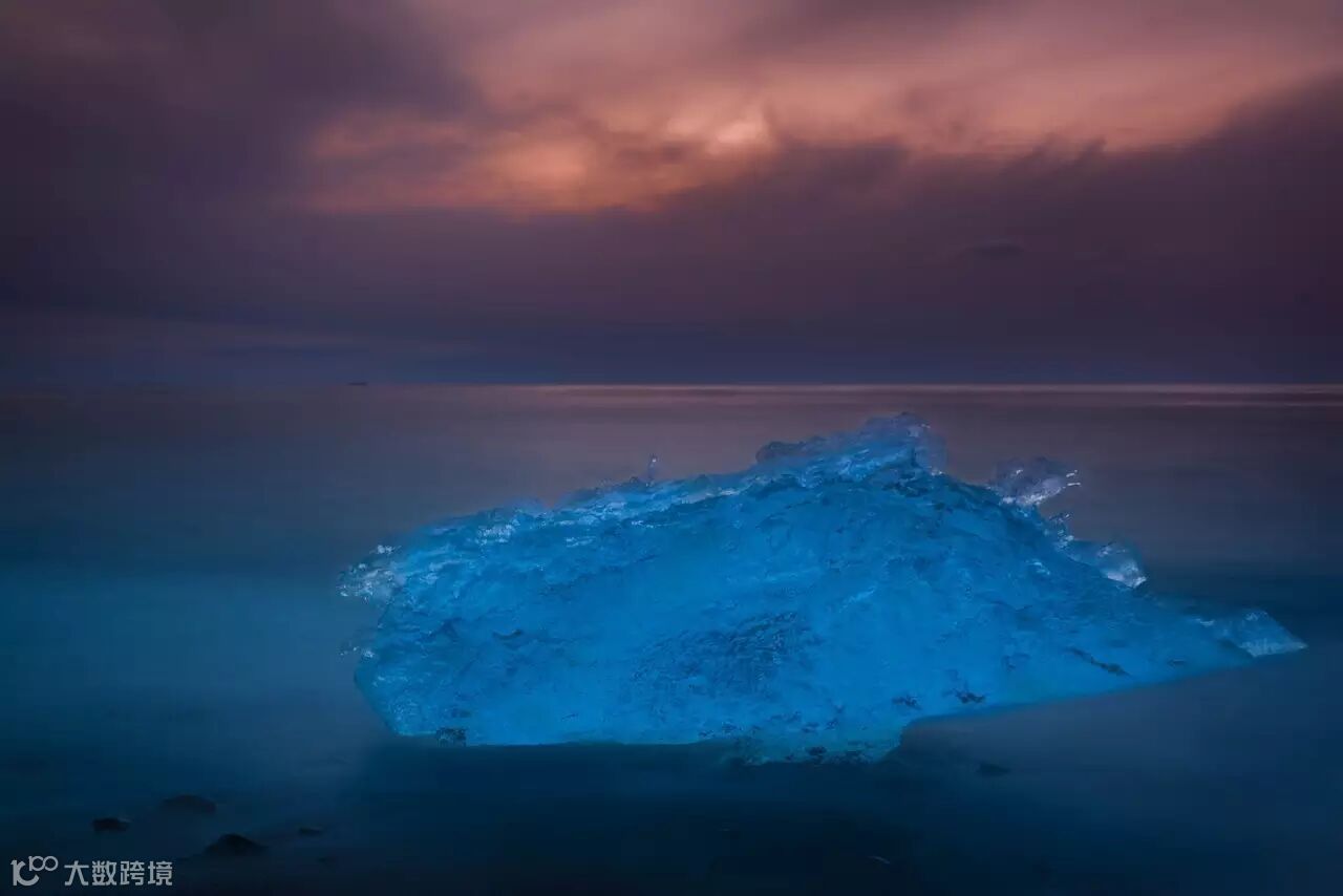 冰河湖坐落于冰岛东南部,湖上满是冰河时期断裂入水的漂浮冰山。浮冰全部都是冰寒的蓝色,越大的越蓝,越蓝的越美。这条湖通过一条河连着大海,浮冰在水的流动下飘向海洋。走到岸边,随处可见的小型冰块,晶莹而纯净,就像一不小心就进入了冰河时代。
