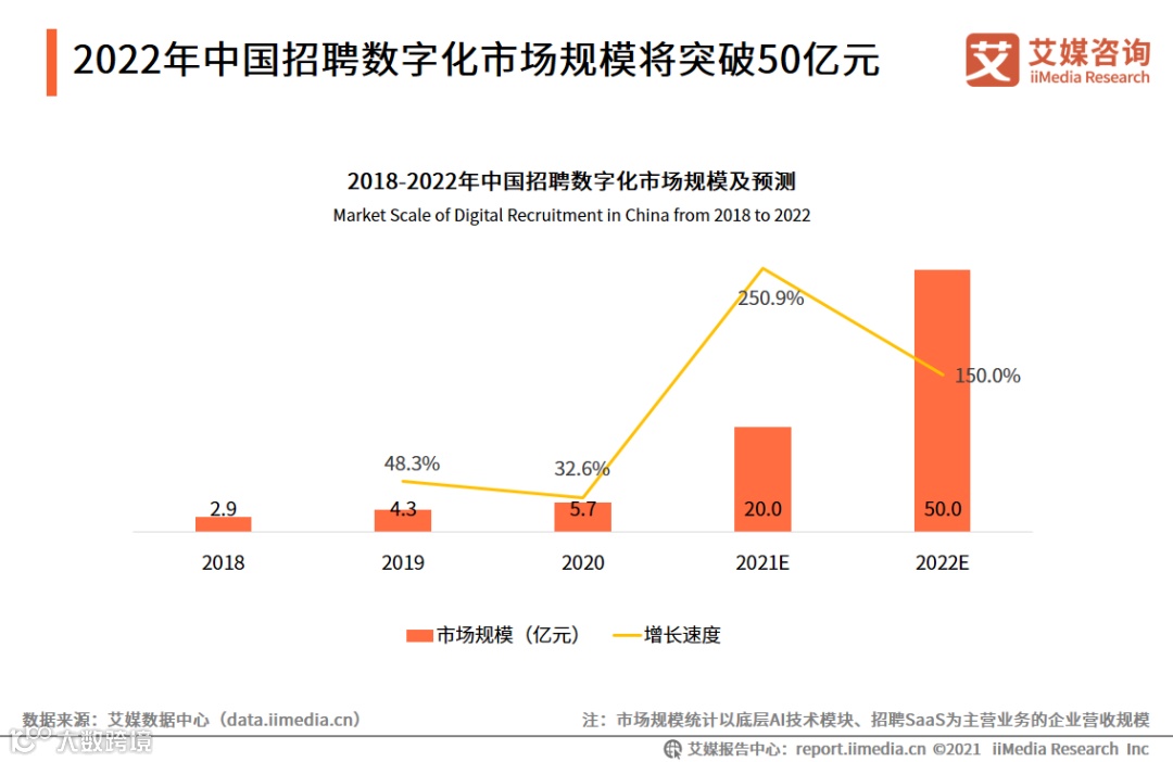 行业潜力:中国招聘由信息化逐渐步入智能化,2022年招聘数字化市场规模将突破50亿元
