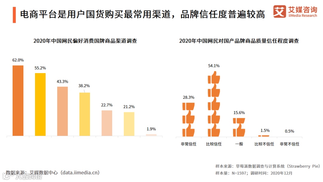 电商平台是用户国货购买最常用渠道,品牌信任度普遍较高