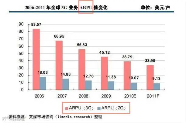 Verizon Wireless的2007年财报显示,其数据业务收入比2006年增长了65%,ARPU值实现连续7个季度增长,不过在2008-2010年这个增长并不明显;3G先行者和记电讯2007年净利润增加53%,这预示着其正在走出阴霾,开始享受到3G带来的价值。在日本,总体趋势,日本各大运营商ARPU总体下降趋势,软银中低端客户相对比较多,下降更明显。
