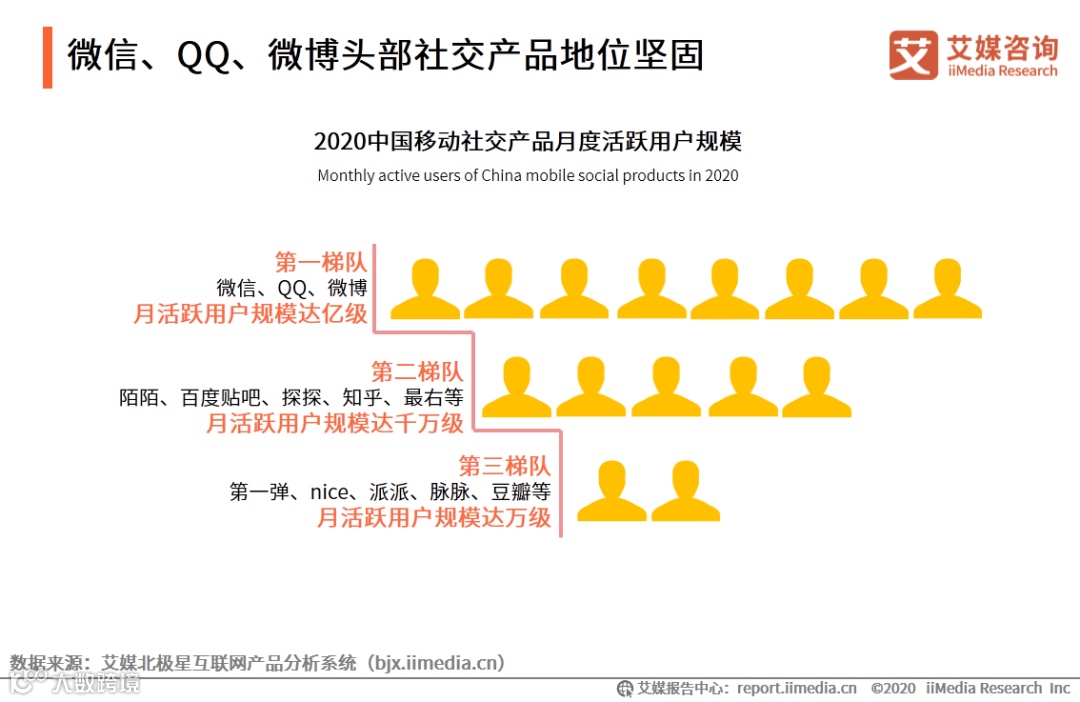 中国移动社交用户2020年突破9亿人,头部社交产品地位依旧坚固