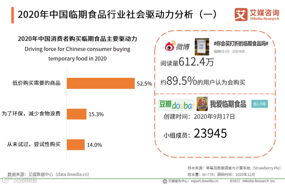 临期食品,因为还没过期可以销售食用,而消费者又可以低价“捡漏”,所以受到了大众的青睐。对此,iiMedia Research(艾媒咨询)发布了《2020年中国临期食品行业市场分析及消费者研究报告》,围绕中国临期食品行业发展背景、驱动力、行业模式、典型平台、用户行为、以及行业发展趋势等进行分析解读。