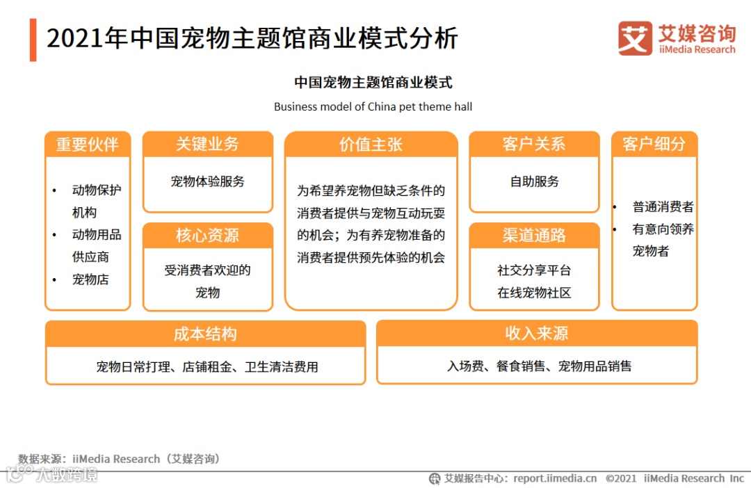 宠物主题体验馆方面,其商业模式分为两种,第一种主要是以网红宠物为卖点,满足目前部分人由于工作或生活原因无法饲养宠物、但渴望与宠物游玩的需求,以入场费为主要盈利手段;第二种以宠物领养为主要目的,通过宠物主题馆收养流浪猫、狗等,同时寻找适合领养宠物的顾客,以领养代替贩卖,主要盈利手段是咖啡或其他餐食。