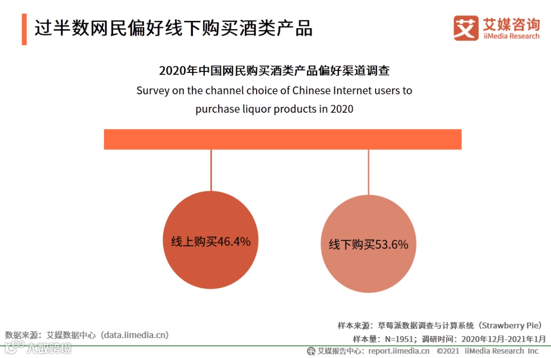 过半数网民偏好线下购买酒类产品