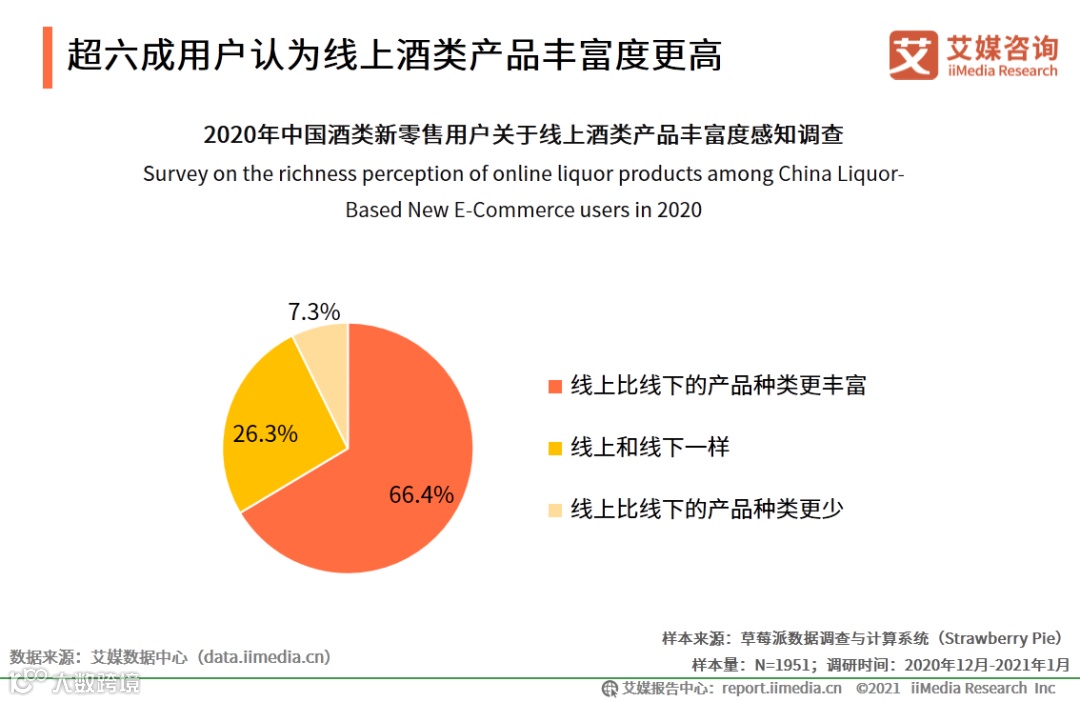 超六成用户认为线上酒类产品丰富度更高