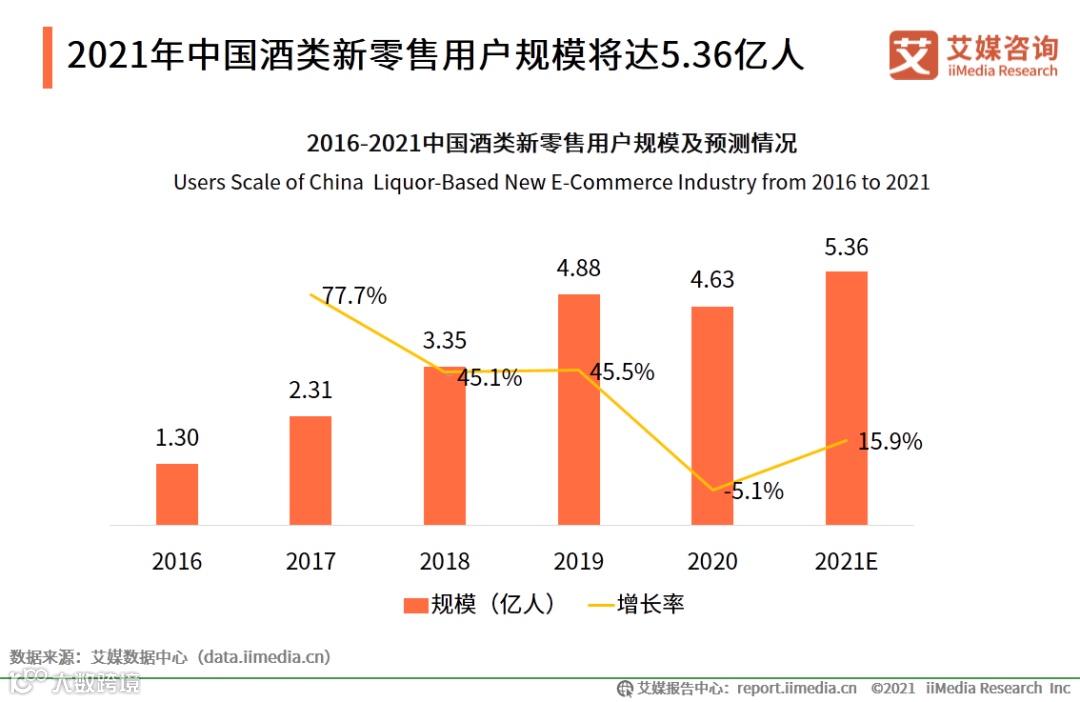 2021年中国酒类新零售用户规模将达5.36亿人