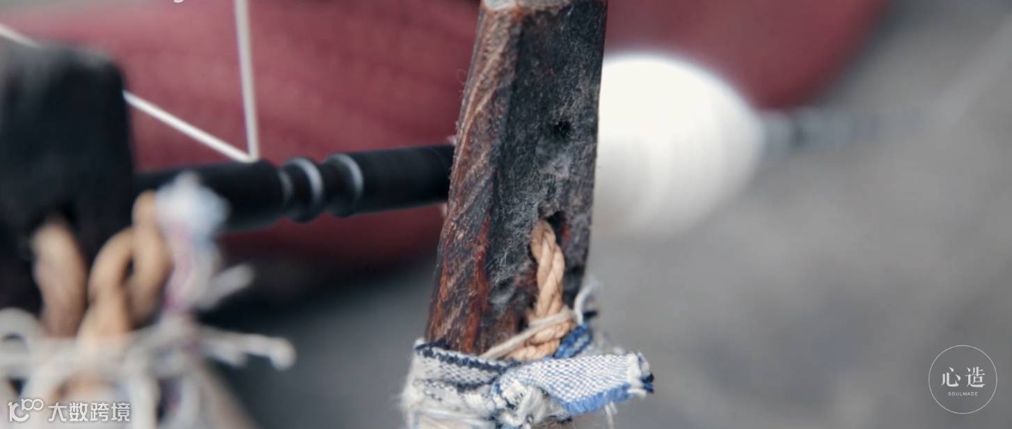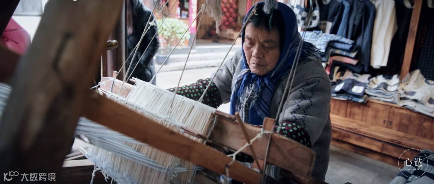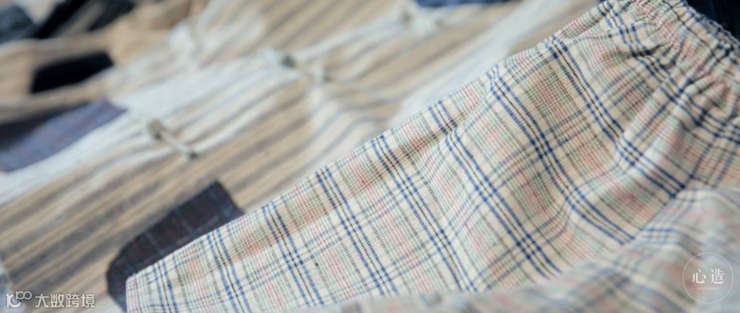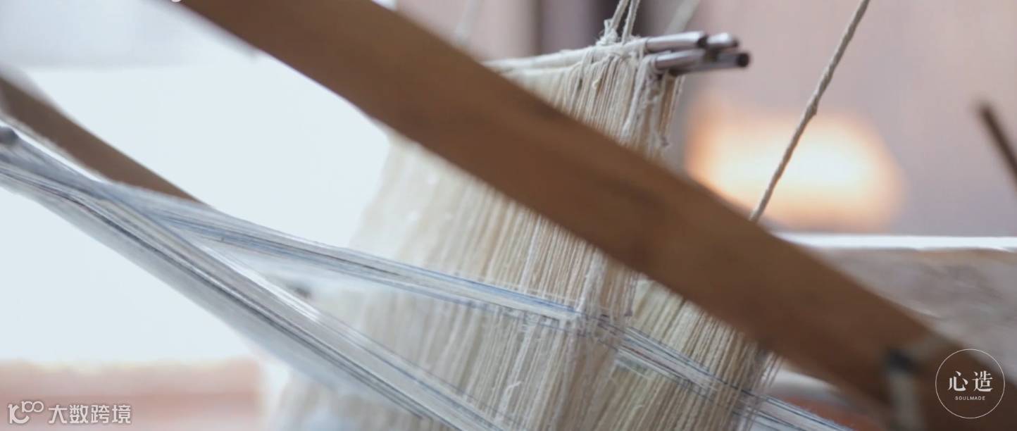 阿婆在织布机前的一招一式,都再现了江南传统纺织工艺的质朴与自然,既没有西方纺织工艺特有的表现手法、也没有东亚纺织品特有的美感形式;既没有浓墨淡彩地挥洒古诗般的华丽外观,也没有妖娆转身地闪现出细腻绝美的内涵。而是将中华民族粗布工艺原原本本、实实在在地展现出来。这种美虽不华丽但也不粗粝,不洋范儿也不泥土味儿,如果丝绸是小家碧玉式玲珑剔透,美却极易滑丝;而粗布的美好有如玉蚌内的珍珠,温柔而长久。