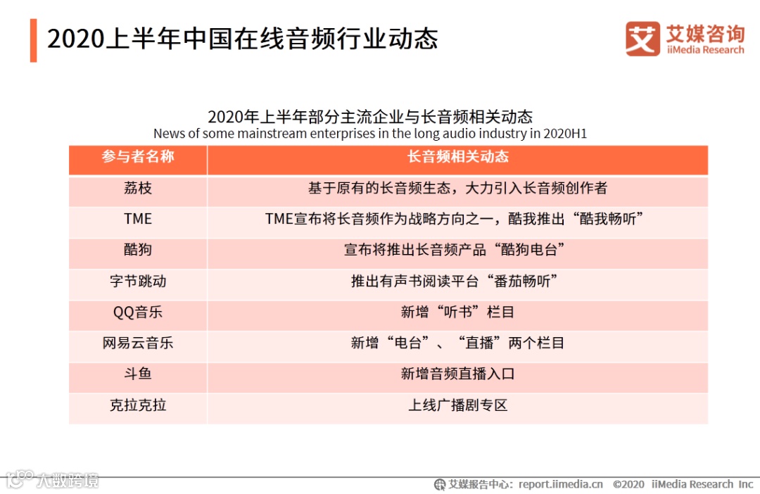 图表3:2020年上半年部分主流企业与长音频相关动态