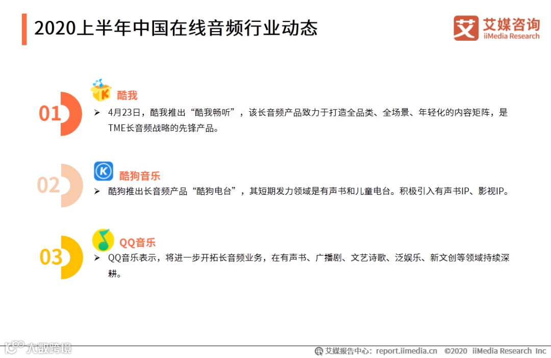以上内容源自艾媒咨询发布《2020上半年中国在线音频市场研究报告》,完整版共49页;限于公众号篇幅,故仅摘部分数据和观点,如有兴趣深入,移步报告中心官网下载。