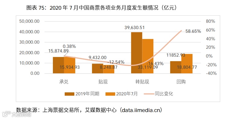 图表75:2020年7月中国商票各项业务月度发生额情况
