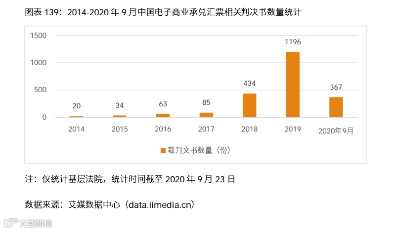 图表139:2014-2020年9月中国电子商业承兑汇票相关判决书数量统计