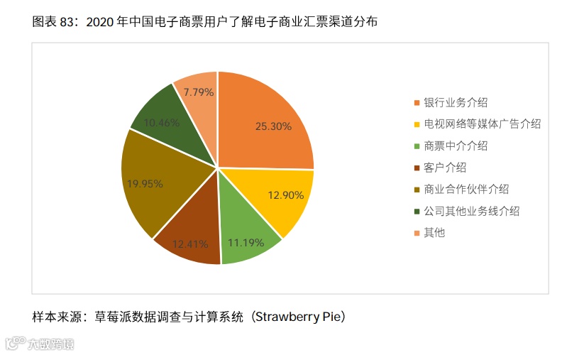 图表83:2020年中国电子商票用户了解电子商业汇票渠道分布