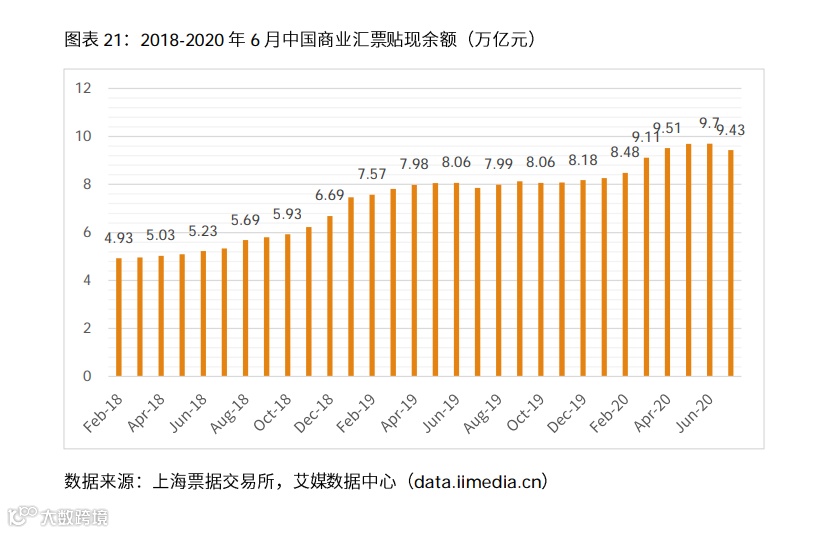 图表68:2013-2020Q2中国电子商业汇票系统贴现金额及同比增速