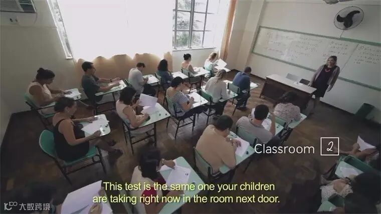 巴西里约热内卢的圣阿马鲁学院,学校给前来参加家长会的家长们,安排在一间教室里,告诉这些很久没有接触考卷的大人:“今天,你们要和自己的孩子参加同样一次考试,做同一套试题……”虽然感到有些惊愕和不解,但还是很配合地,饶有兴致地完成了答题。