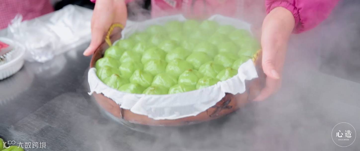 这青团,看着碧绿,闻着清香,吃着香甜。如今横街的“沈记青团”早已是门庭若市,沈建芬和她丈夫俩人在店里现包现做,还有亲戚帮忙打打下手,有人包、有人蒸、有人卖,每天都可以卖出上千个青团。沈建芬让这一千年前的祭祀食品,成为苏州横街人们日常最爱的美食。