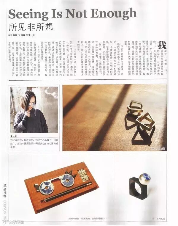 黄一川本科学习家具设计,2007年毕业,偶然的机会把爸爸收集的青花瓷片做了几样小首饰,因为技术不够成熟,所以最初这几个作品,便不敢拿出来戴,被她默默地收藏着。后来,黄一川来到北京,认识了很多独立设计师,这些从前的小作品也被拿出来和大家分享。
