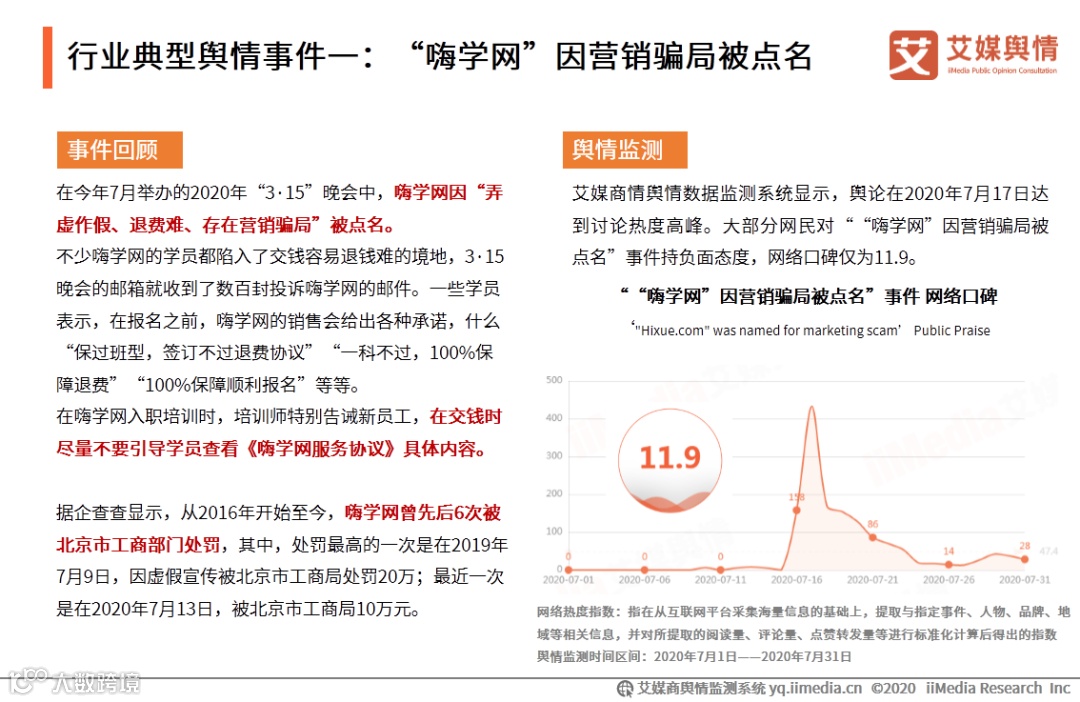 1. 行业典型舆情事件一:“嗨学网”因营销骗局被点名