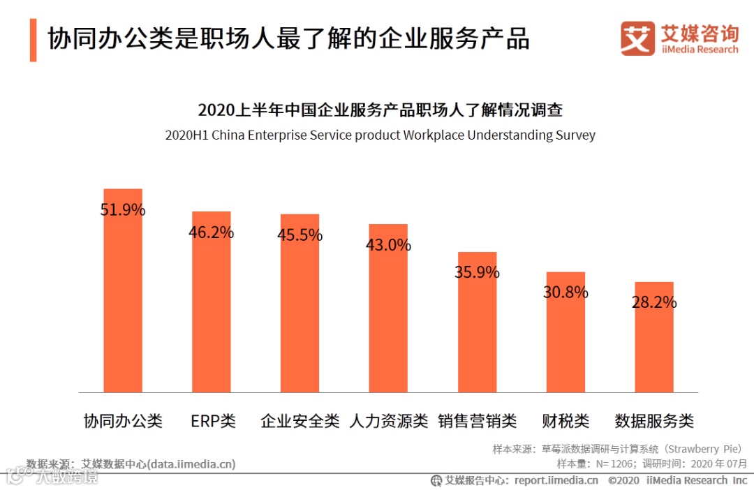 1. 协同办公类是职场人最了解的企业服务产品