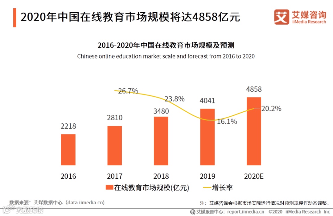 4. 2020年中国在线教育市场规模将达4858亿元
