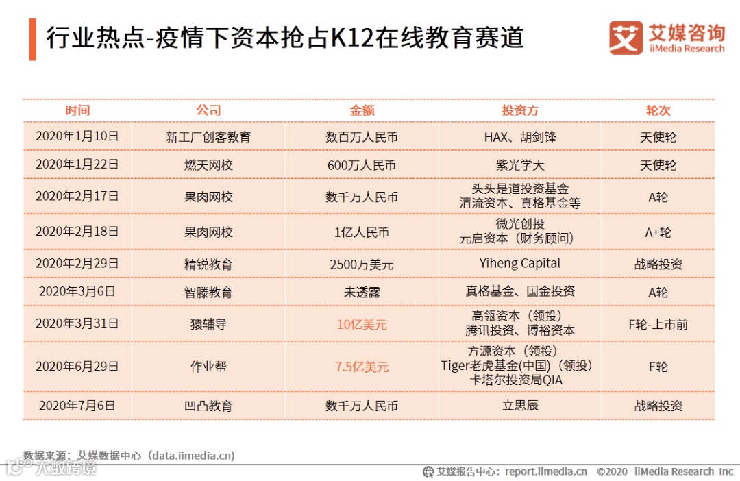 二、2020上半年中国K12在线教育行业热点追踪