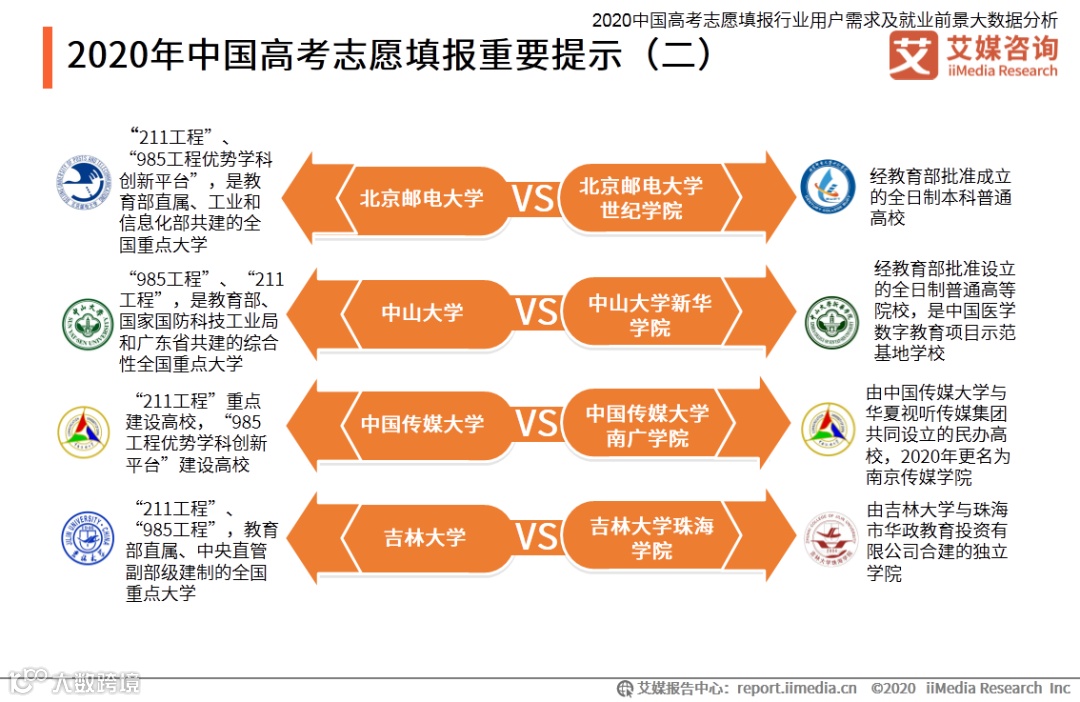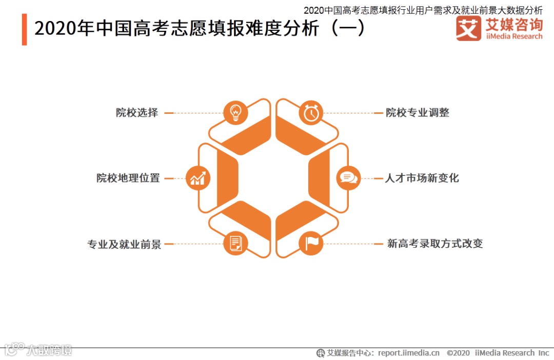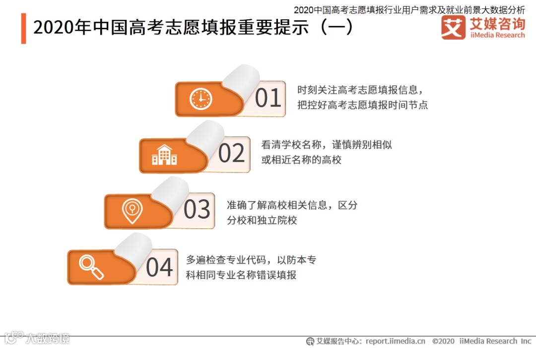 以上内容源自艾媒咨询发布《2020中国高考志愿填报行业用户需求及就业前景大数据分析》,完整版共140页;限于公众号篇幅,故仅摘部分数据和观点,如有兴趣深入,移步报告中心官网下载。