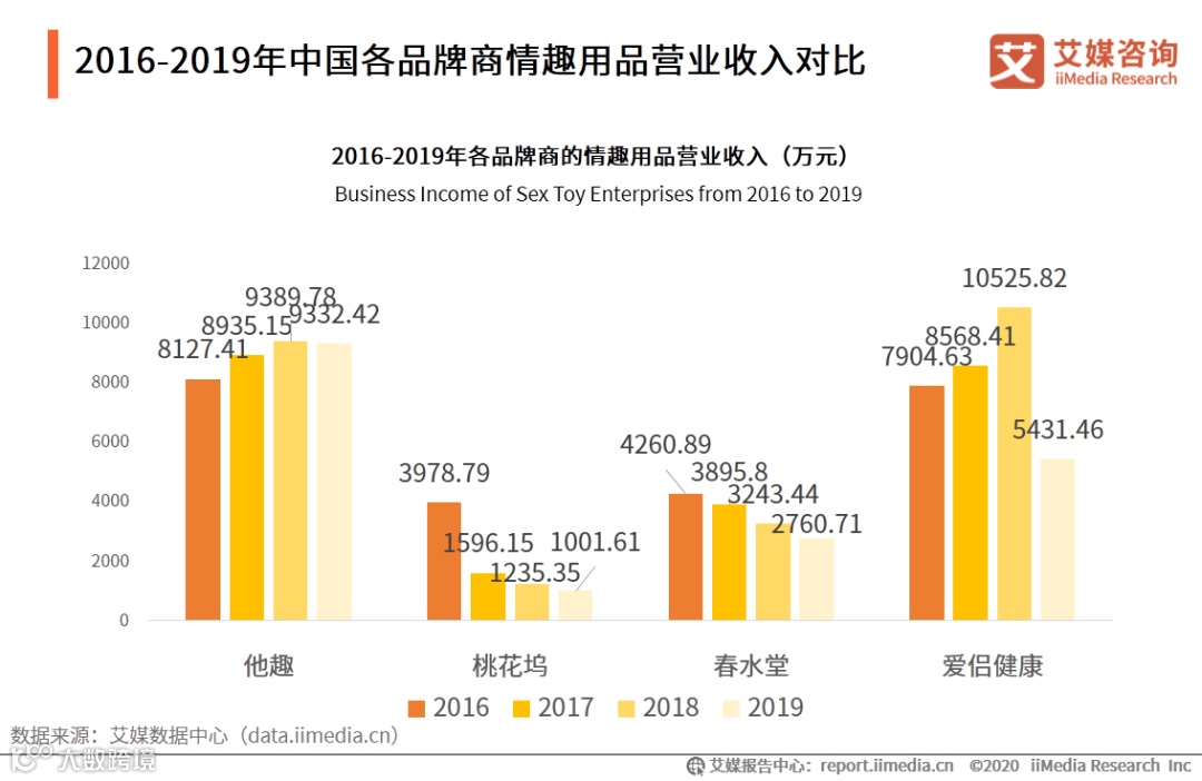 1. 2016-2019年中国各品牌商情趣用品营业收入对比