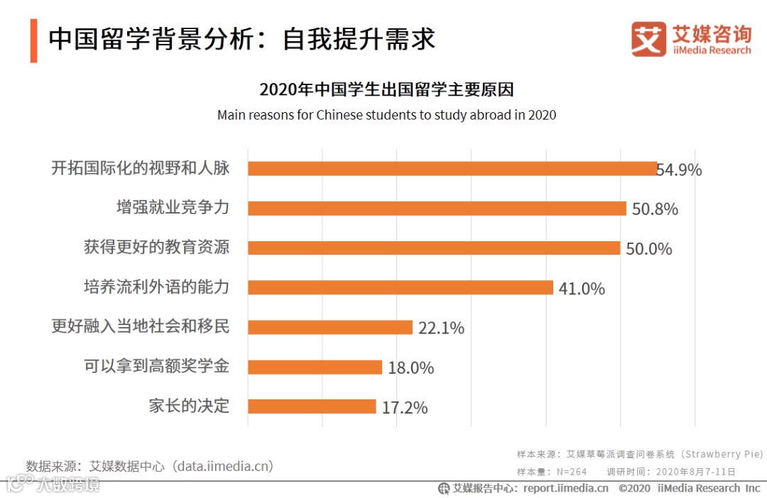 以上内容源自艾媒咨询发布《2020年全球留学市场变化与中国留学生选择意愿行为分析报告》,完整版共66页;限于公众号篇幅,故仅摘部分数据和观点,如有兴趣深入,移步报告中心官网下载。