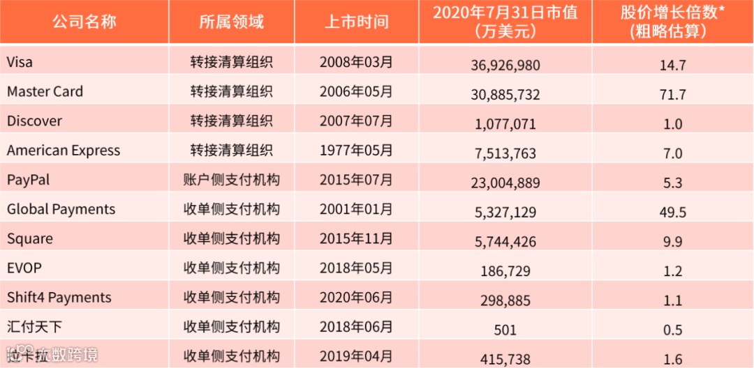 以中美两国第三方支付企业上市数量以及市值来看,中国上市的第三方支付企业数量少,市值小,企业整体实力与美国悬殊大。