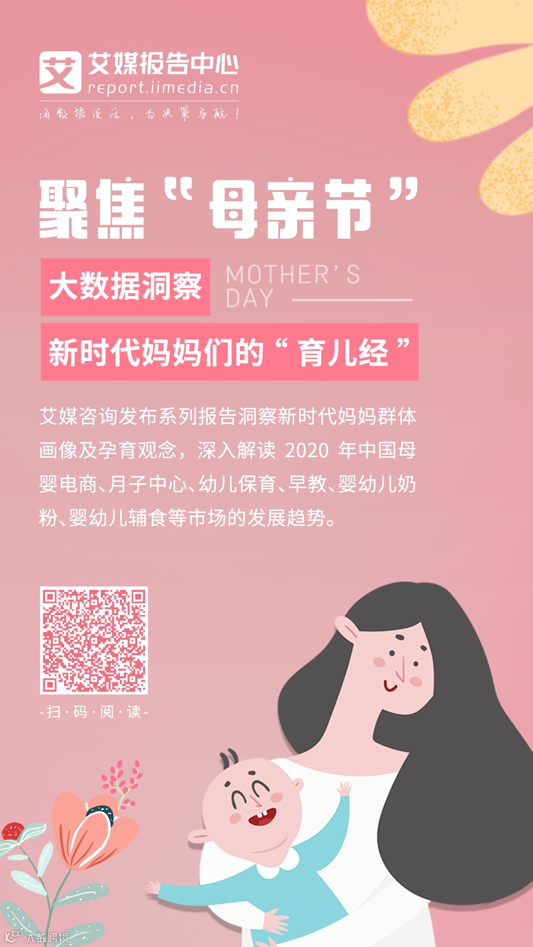 看完以上内容,你对妈妈群体是否有了更全面的了解呢?用数据说话,为决策导航!艾媒报告中心上线“母亲节”热点报告专题,用数据洞察妈妈群体画像及孕育观念,深入解读2020年中国母婴电商、月子中心、幼儿保育、早教、婴幼儿奶粉、婴幼儿辅食等行业发展现状及发展趋势。了解更多,请点击文末“阅读原文”进行阅读。