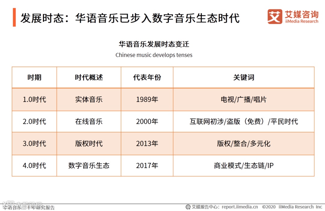 华语音乐历经30年的发展,经由音乐媒介的变革,再伴随独具天然优势的视频平台、在线音乐平台、短视频等流媒体平台的入局,行业向生态化发展,这宣告着华语乐坛步入了以数字音乐生态为鲜明特征的4.0时代。
