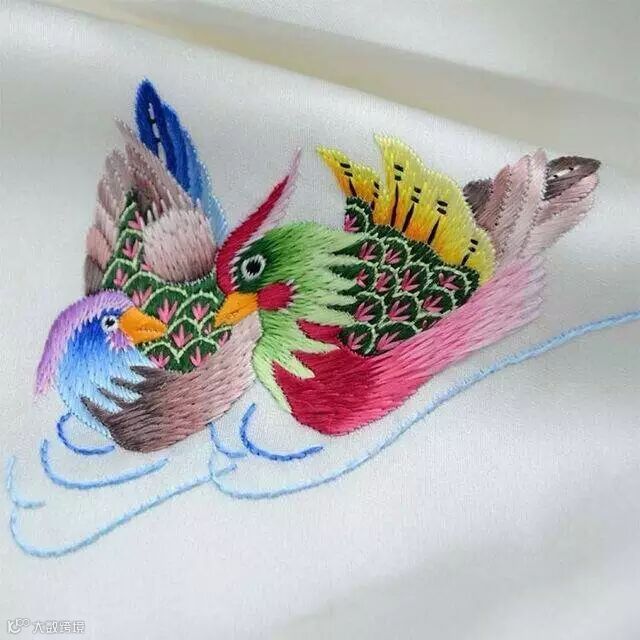 蜀绣用线工整厚重,设色典雅,线法光亮、紧密柔和,题材多吉庆寓意。