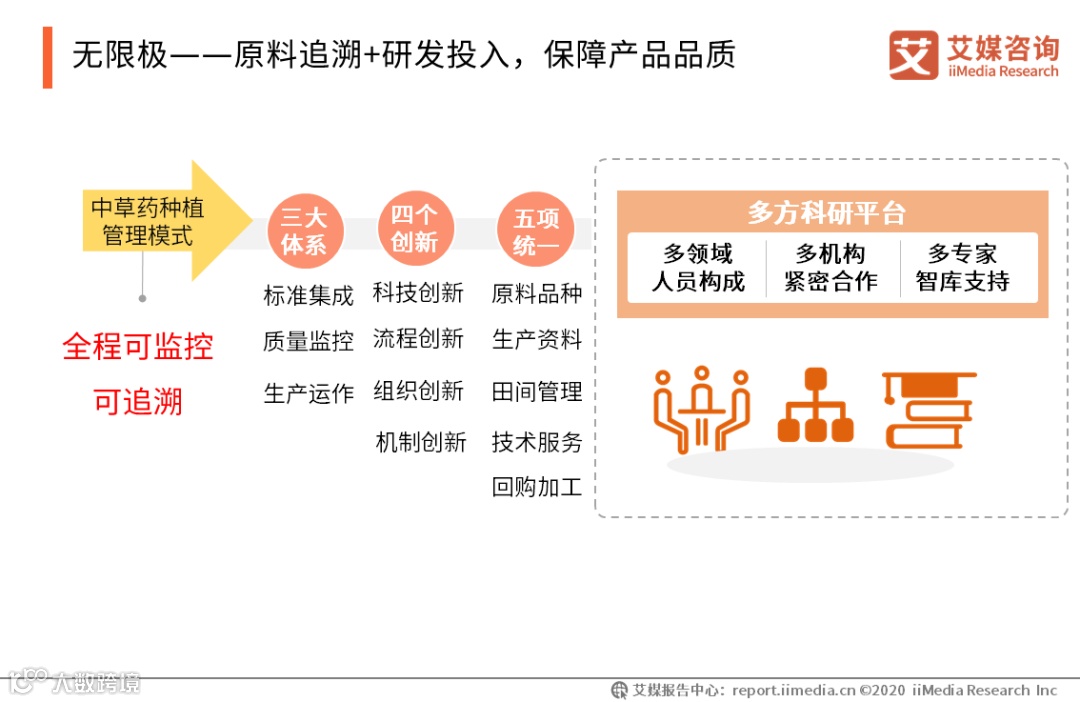 艾媒咨询分析师认为,中草药保健品市场虽然发展前景广阔,但长期面临着产品研发不足、产品同质化、品质难标准等问题,严重制约了中草药保健品的发展潜力。随着消费者健康素养以及经济水平的提升,他们将更加注重产品的功能品质,这意味着中国保健品行业“轻研发、重营销”的做法亟待变革。无限极作为保健品行业头部企业,一直较为重视研发技术的投入,科研实力稳步提升。通过独特的中草药种植管理模式,无限极做到了产品原料全程可监控可追溯,为产品品控增加了保障。