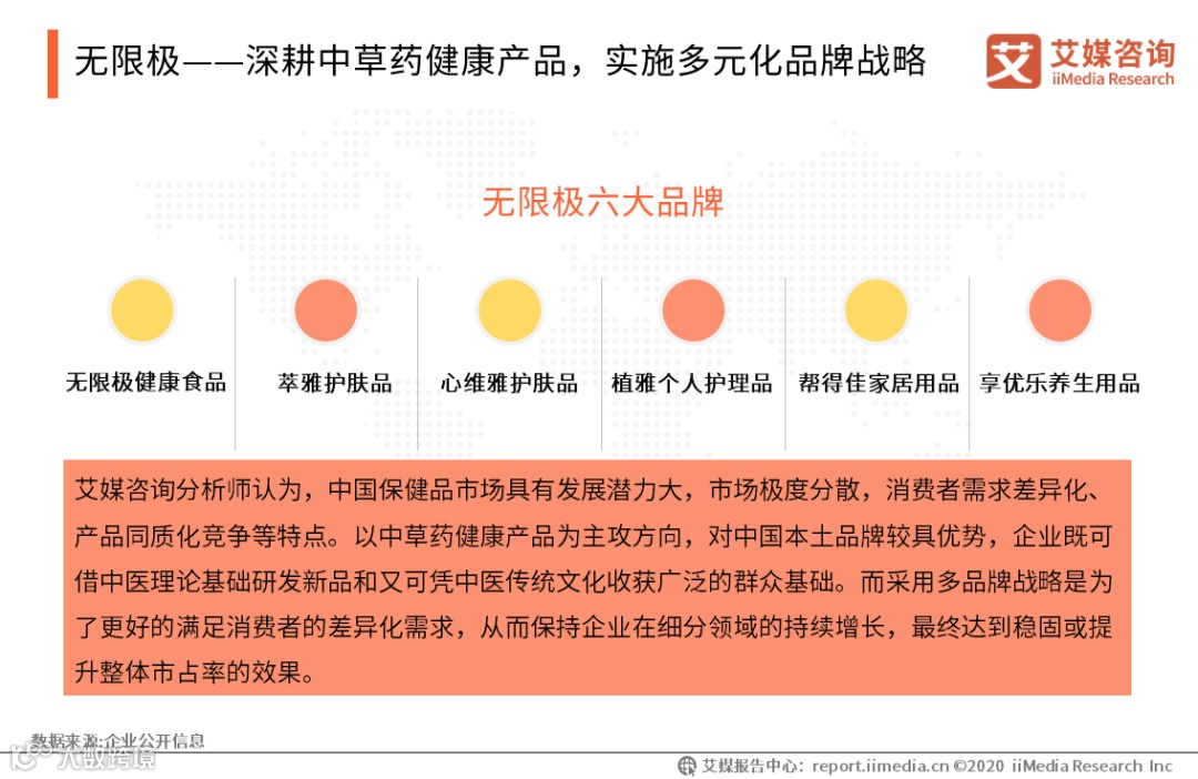 无限极成立于1992年,隶属李锦记健康产品集团,专注中草药健康产品的研发、生产、销售和服务业务。目前无限极拥有2个生产基地、30家分公司、30家服务中心、超7500家专卖店。截至2019年底,公司已上市产品包括五大系列、六大品牌,共150余款产品,旗下第一款复合多糖中草药健康产品,上市时间长达20余年。