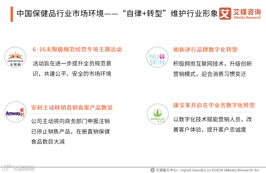 2019年权健事件引发了保健品行业的大整顿,虚假宣传、非法传销、非法添加、欺诈销售等问题成为重点清理对象,为维护品牌及行业形象,保健品企业纷纷开启了“自律+转型”自救模式。艾媒咨询分析师认为,权健风波虽然极大地影响了消费者对保健品行业的信任,但头部品牌企业却“因祸得福”。一方面,行业信任缺失会促使消费者更加青睐合规经营的优质品牌企业,有助于品牌方提升用户忠诚度;另一方面,行业洗牌提升市场集中度的同时,也为保健品企业带来转型升级的契机,头部品牌优势凸显。