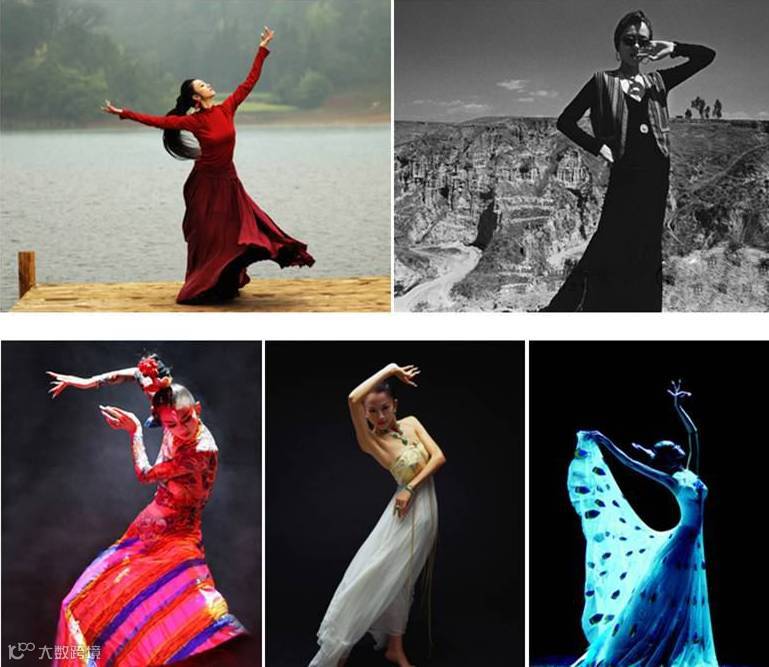杨丽萍的穿着风格多为修身细长款,搭配合身的上衣及宽摆拖地裙。及地长裙多使用自然色浸染亚麻布,加以绸缎及雪纺装饰。举手投足之间散发着优雅又灵动的气质,令人赏心悦目。