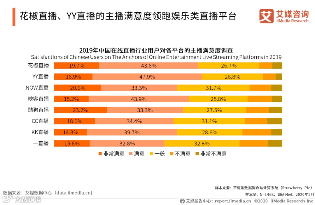 iiMedia Research(艾媒咨询)数据显示, 2019年中国在线直播行业用户对各娱乐类直播平台的主播的总体满意度较高,其中头部直播平台,如花椒直播、YY直播的主播有较多正面评价。结合前面数据可见,直播平台的主播质量对吸引、留存用户有较大的影响。因此,艾媒咨询分析师认为,各在线直播平台应注重主播的培养和管理。