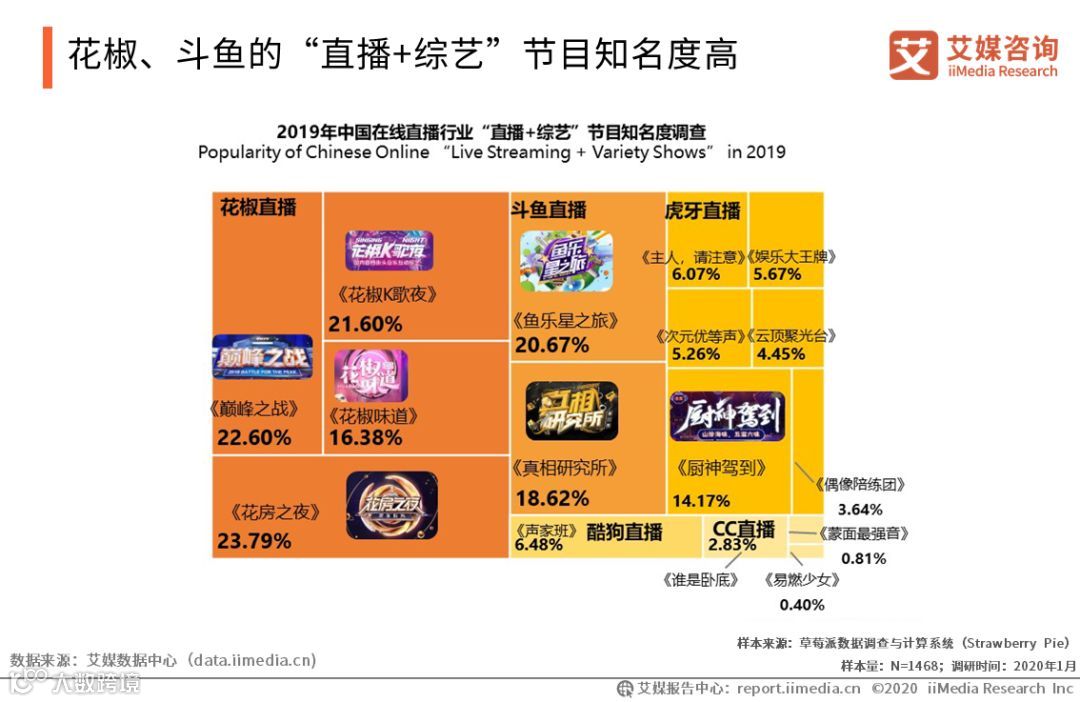 9.2019年中国在线直播行业“直播+综艺”节目知名度调查
