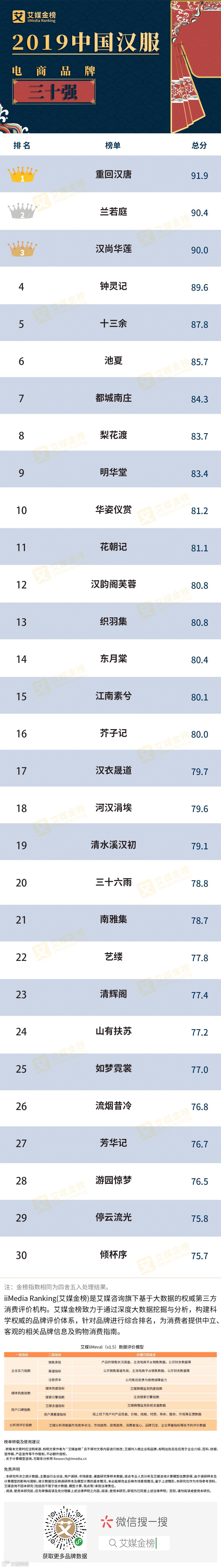 日前,艾媒金榜发布了《2019中国汉服电商品牌三十强》,此榜单采用艾媒独有的iiMeval大数据评价模型,结合品牌实力、发展范围、网络口碑、线上关注热度、分析师评分等多个维度针对品牌进行综合评价与排名。