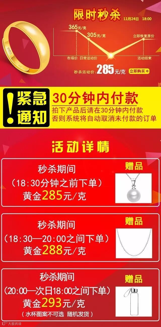 黄金285元/克限量100件,限时秒杀进入倒计时!
