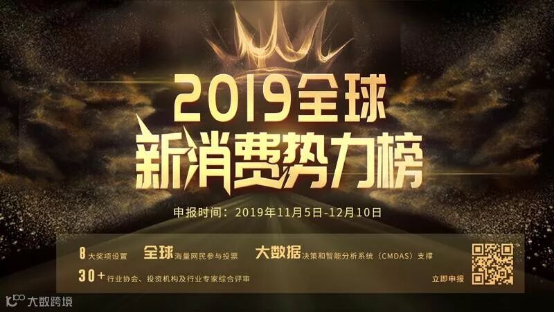 同时,“2019全球新消费势力榜”报名活动还在进行中,欢迎自荐/推荐新消费平台、跨境电商、智能电子产品、美妆个护、母婴、品质生活、医美、食品八大热门消费领域的优秀企业,我们将甄选符合条件的公司入围,并将陆续发布新一轮入围名单。