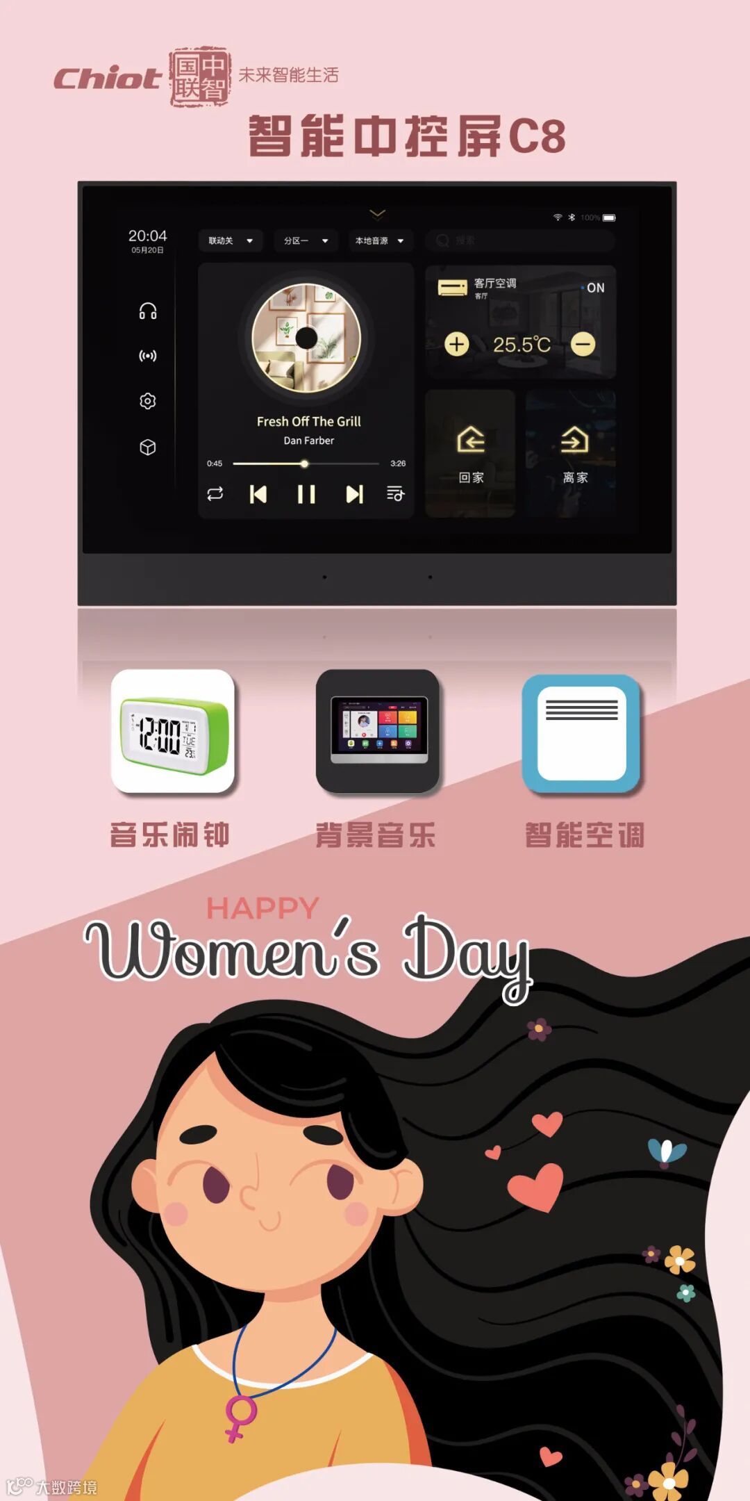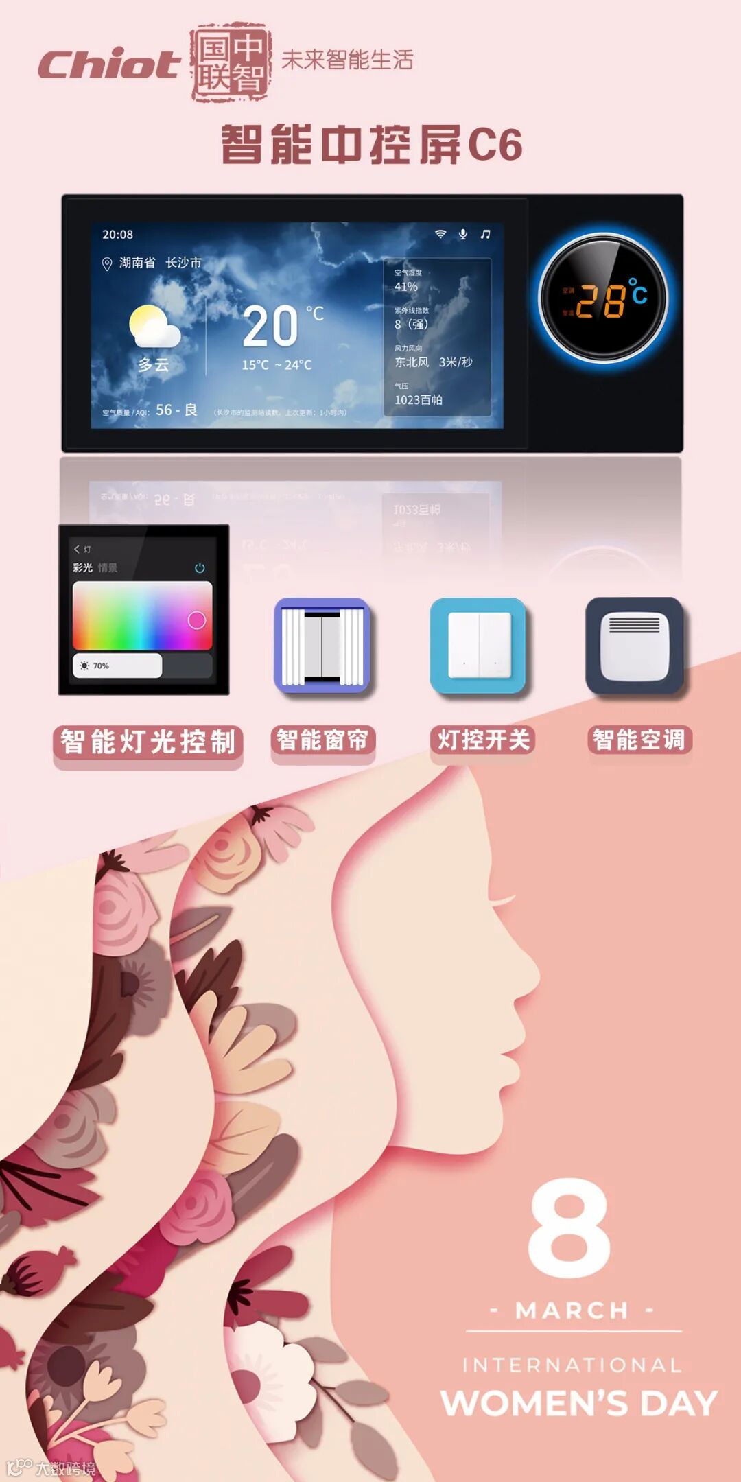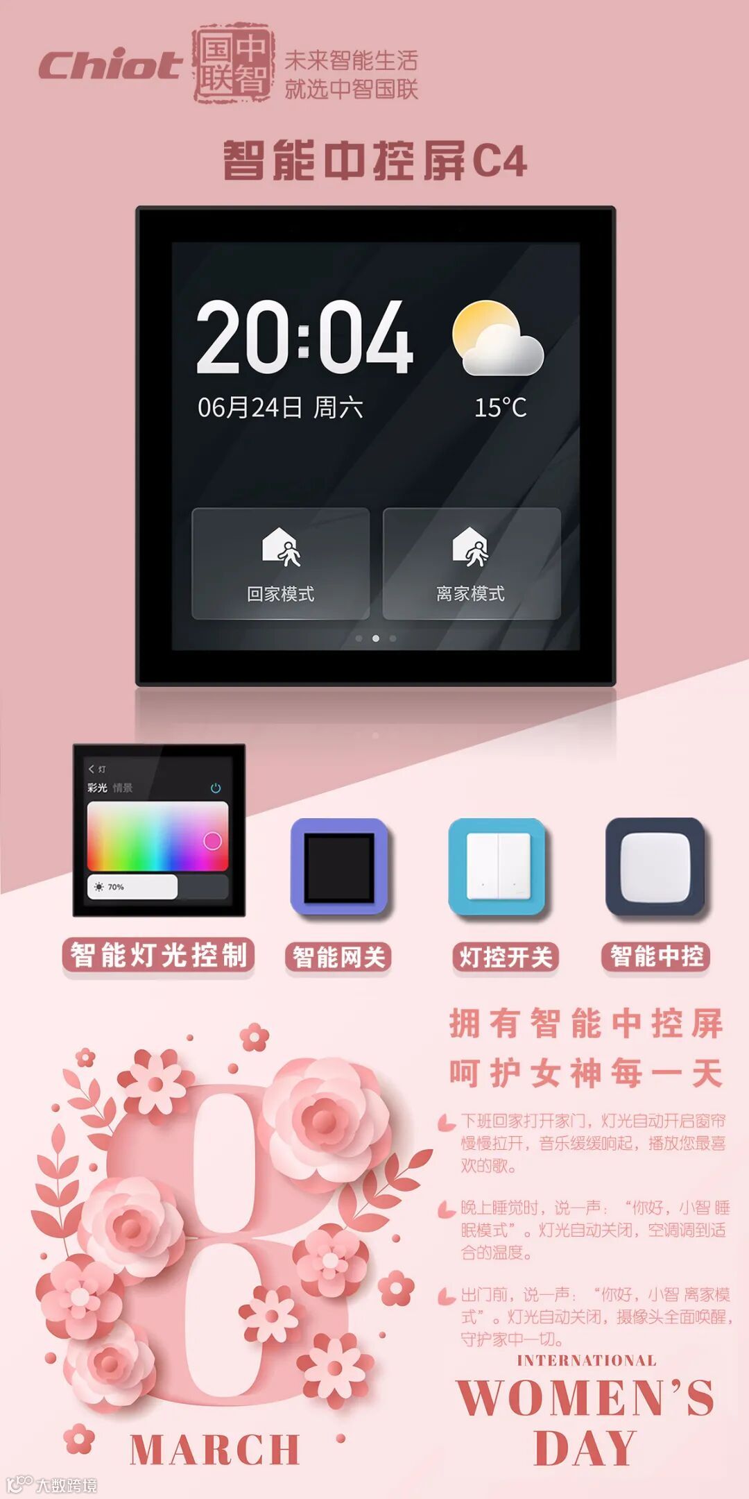 转眼又是一年的三月,迎来真正的春季,这个属于女生的月份。无论是娇羞的小公举,还是强悍的女汉子,都希望在这样的节日里能有人关心爱护。中智国联推出新款智能中控屏,为每位女性带来方便简洁的智能生活,愿天下所有女同胞们都能享受智能科技为大家带来的幸福生活。